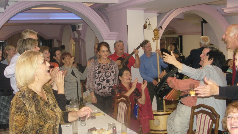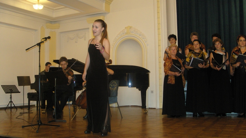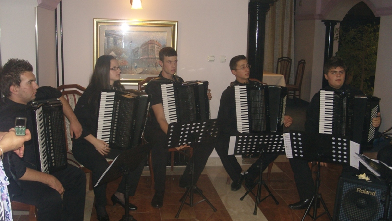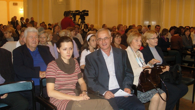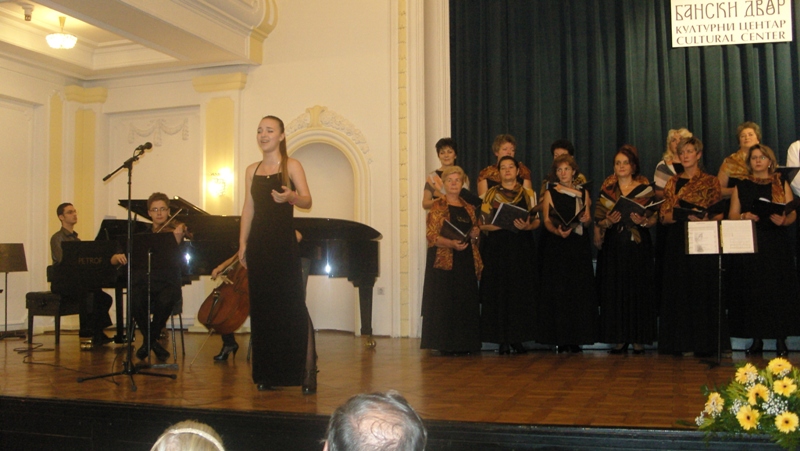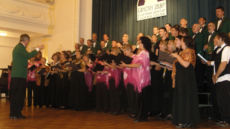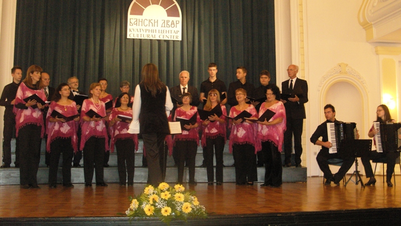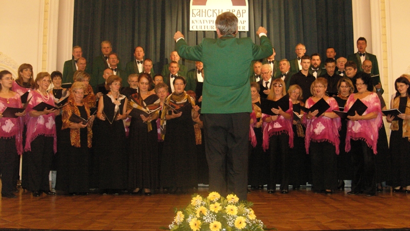 In the programme which lasted for an hour and a half the following choirs made their performances: Mixed Choir “Camerata Slovenica” of the Association of Slovenians from Sarajevo, Mixed Choir “Davorin Jenko” of the Association of Slovenians “Triglav” Banja Luka and an instrumental group with a vocal soloist Aleksandra Bilanović “Mladi Jenkovci” from the same association, and guests, fellow-countrymen from Slovenia, “Lovski pevski zbor” – “Hunters’ Choir” from Medvode. The choir from Sarajevo conducted by Melita Čičić sang three Slovenian folk songs accompanied by accordions. Thereupon, choir “Davorin Jenko” sang four Slovenian folk songs and a song “Zbog tebe” – “Because of you” by Merima Njegomir accompanied by instrumental group and the vocal soloist and conducted by Aleksandar Jeremić. Songs sang by members of “Hunter’s Choir” from Medvode, conducted by Janez Čadež, were divided into two parts. The first part was dedicated to songs by Slovenian authors, and the second part to songs by foreign authors (Jakob Petelin Gallus, Žarov, Marković, Mirk.....). It was with the song “Žabe” - “Frogs” by Vinko Vodopivec that they thrilled the audience. Applauding and joyful atmosphere was that strong that it gave the impression of a wedding, as the contents of the song was explained by the presenter Mr. Rudi Zevnik.