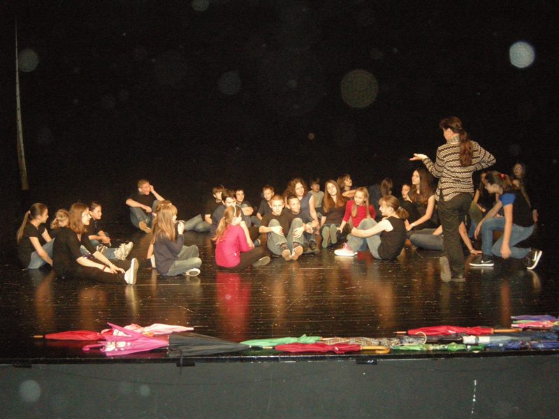 On Friday, they were making masks and puppets the whole day, on Saturday the decided on the roles and practiced and on Sunday they already showed results of their work. A performance “A balloon can also be my umbrella” resulted from the workshop, while children played it to audience who filled in theatre Jazavac. A fairytale by Ela Peroci took us to the Land of Hats. More than 30 children made a performance accompanied by music – one could hear sounds of accordion, guitar and violin. Photographs can tell more than words although it is rather difficult to describe what the children had to make and learn in order to make the performance.