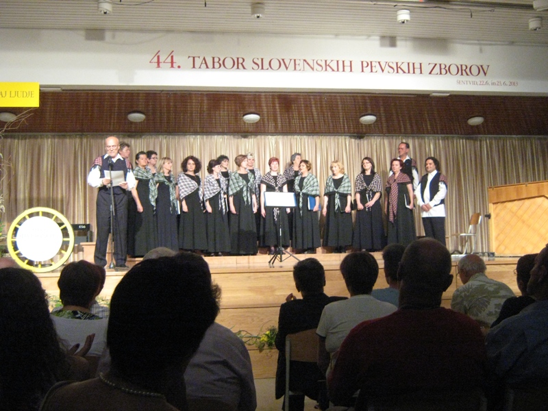 This was the 14th time for mixed choir »Davorin Jenko« of the Association of Slovenians Banja Luka to take part at a great choir performance Gathering of Slovenian choirs in a pleasant town of Šentvid pri Stični, where all the people who live there try to be good hosts to numerous choirs on a Saturday evening. On 22 June 2013 they organised the 44th concert »Let the people sing» where eleven choirs from neighbouring countries took part. Our choir also took part at the gathering.