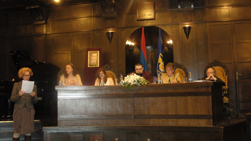 The attendees were welcomed by Nataša Kajmaković on behalf of the Association of Slovenians and the linking text was read by Aleksandra Čvorović while writer Zdravko Kecman spoke about poet France Prešeren.