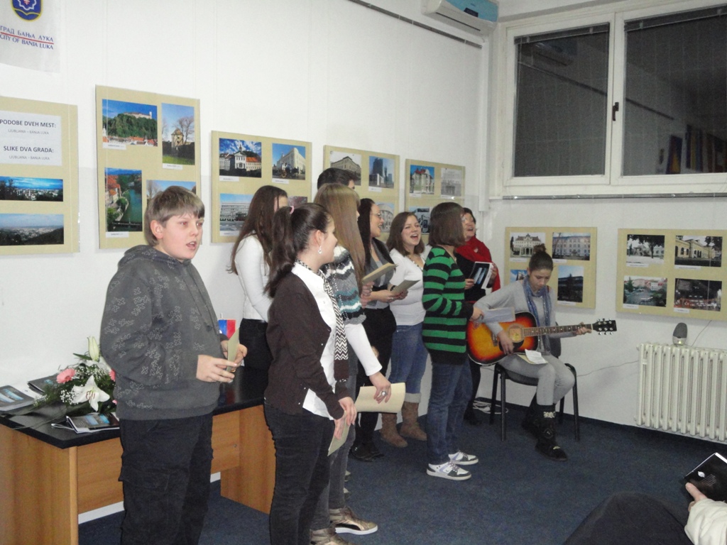 The idea for the exhibition originated with Slovenian teacher Valentina Gradič and students of the Supply Teaching Lessons of Slovenian. In the advanced group of students she realized that they knew quite a lot about the motherland of their ancestors, whereas all sightseeing spots of Ljubljana all of a sudden had parallels with those of Banja Luka. Tourist Boards of Ljubljana and the City of Banja Luka assisted with photographs from their archives and those they did not have were taken by teacher Nina and her friend M. Čujež.