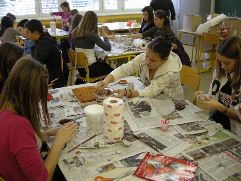 On Thursday, 6 December afternoon we went to the school to watch a charitable performance, prepared in cooperation with UNICEF. On Friday, 7 December, we participated in a creative workshop led by Rada Kos, editor of magazine Prostočasnik. Look at the photographs how we made Santa Claus! In the afternoon we met with writer Tadej Golob and illustrator Ciril Horjak in Trubar's house. They presented a book Zlati zob and each pupil got one copy. We were not only their audience, to the contrary, Ciril Horjak moderated a workshop of making comics which resulted in really interesting comics. On Thursday and Friday we went to the city centre and visited Prešeren's monument, Tromostovje, Mesarski bridge, market, Robbov vodnjak and city hall. We walked around the streets of Old Ljubljana and felt the December pulse of the city. Saturday was reserved for the trip back. Strong connections were made among pupils from Banja Luka, Slatina, Prijedor and Ljubljana and we all look forward to seeing pupils from Ljubljana in our city in spring.