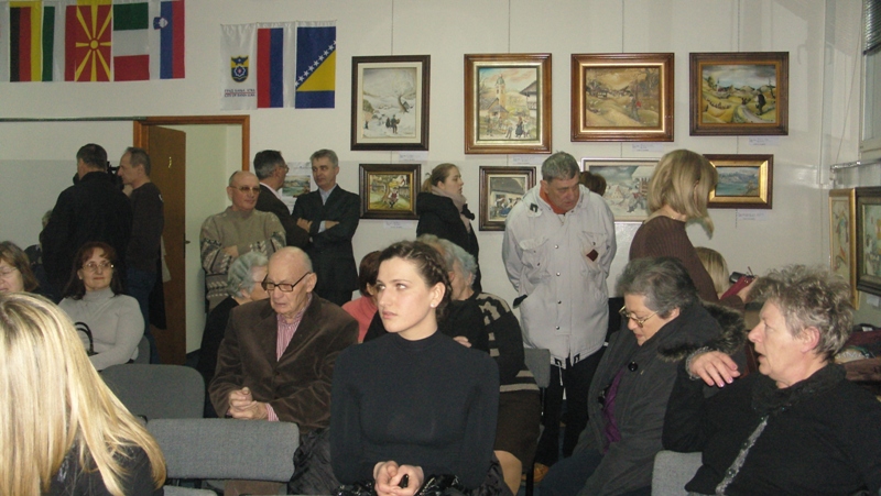 Motives for paintings, as the author himself stated, are found in near and far vicinity of places and people. He gets the inspiration from already existing paintings by well-known authors e.g. Martin Gaspari and others, whose works we can find all over the world. Simon Šubic paints country legends, customs, people and, in his own manner, wherever his exhibition is organised, along with a song, transfers part of richness of Slovenian culture. Mrs. Vesna Vukšinič Zmaić, general secretary of SIM greeted all the attendees on behalf of SIM whereupon Head of Consular Office in Banja Luka Branko Zupanc commended close cooperation between our Association and SIM in the implementation and successful organisation of the exhibition on the occasion of marking the Slovenian cultural holiday. On that occasion, he invited the attendees to enjoy the exhibition, which gives versatile view to the past, country legends, customs and people. Having said that, he opened the exhibition.