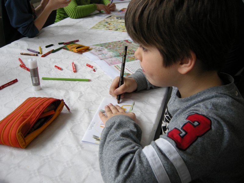 In the workshop lead by Aleksandra and Marina, children painted eggs – not the real ones but those made of paper. They glued them to cardboard, thus making beautiful posters. Franci taught the workshop participants how to shape rabbits and pretzels of pastry, while skilled children’s fingers also made fish. They baked it all and some of them even ate their art work immediately. During the fourth workshop we made invitations for performance »A balloon can also be my umbrella«. The performance will be prepared by students of supply teaching lessons of Slovenian and lead by puppeteers Jelena Sitar and Igor Cvetko. We can already invite you to fly away with us on 12 May to the Land of Hats. The performance will take place in theatre »Jazavac« at 11.00hrs.
