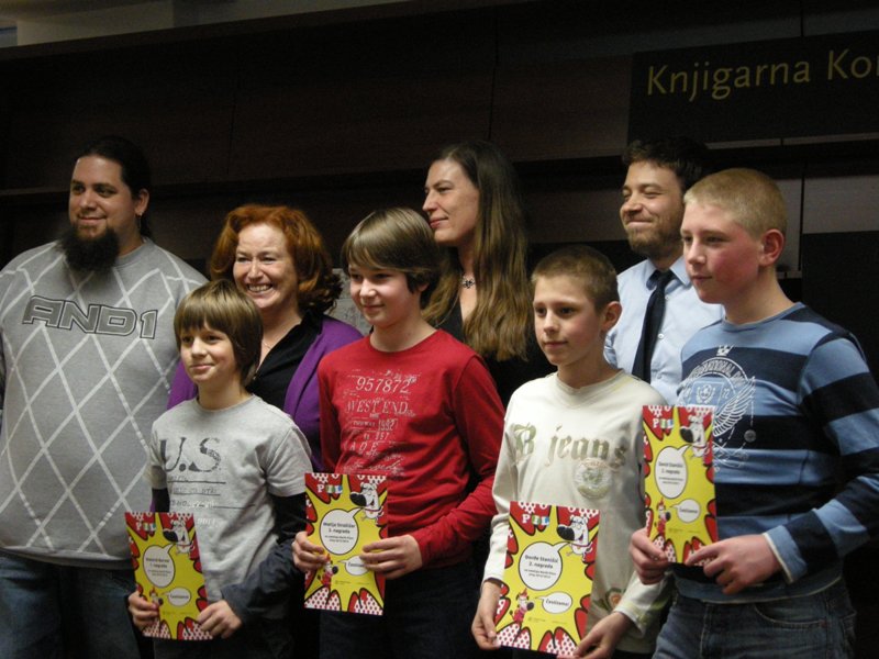 At the pronunciation of prize winners they found out that they won the second prize. On that occasion they met the authors of comics Boštjan Gorenc – Pidžama and Matej de Cecco. Matej showed how comics are made and after the prizes were awarded all guests got a chocolate-fruit Šnofi. David, Đorđe and their sister Tamara toured Ljubljana thereafter, while beautiful prizes will remind them of the nice event.