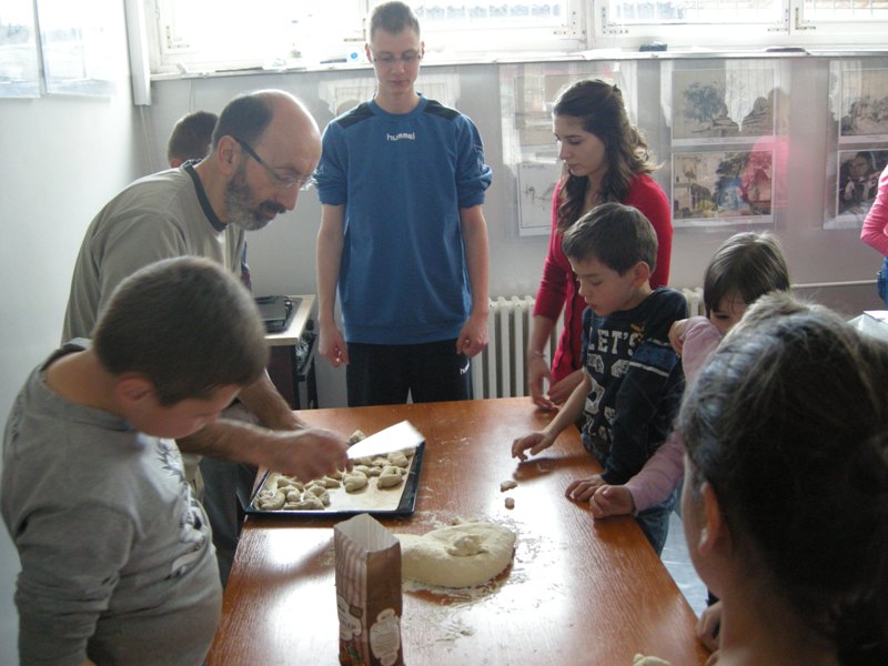 From 9.30 to 12.30 a spring workshop took place. Aleksandra and Ivana taught the children how to make bracelets, Bojana Bošnjak, a guest from Ljubljana, made paper flowers with them, while Franci showed them how to make braids of dough. They made small rabbits and birds and then baked their products. Each child drew a Slovenian flag and on the reverse side own picture. These drawings, paper flowers and bracelets will be sent to Nova Gorica, where Nina Nemec is in charge of the project All the best, Slovenia. Our drawings and objects will be sent to Slovenians throughout the world and we will get their drawings and objects. These projects show that creative activities can link Slovenians living in far or near countries.