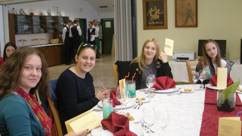 The second day was dedicated to the visit of Ljubljana. In Slovenian School Museum the pupils attended a class of bon-ton of our grandparents. In the Secondary School of Hospitality and Tourism they met with pupils. Future chefs and waiters presented their cooking skills, the manner of serving and behaviour to guests, which was rather new to some of us. Our stomachs were full and we continued our way to Stična. We visited a Cisterian monastery where monks still live and abide by the rule »ORA ET LABORA«.