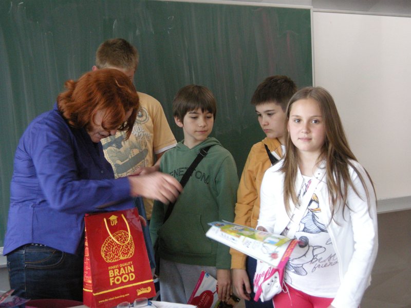 While visiting Ljubljana we also visited the exhibition of awarded works, whereas editor of the PIL magazine Jana Zirkelbach met our students and everyone who took part at the competition, gave them T-shirts of Šnofi and magazines, while she also gave social games to students who got the prize.