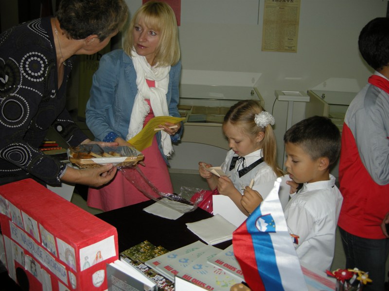 Slovenian word on the occasion of the European Language Day was not heard only at the National Library but also at schools attended by our students. Aleksandar and Rastko Zrnić recited the poem by Nataša Konc Lorenzutti “Declination” at Elementary School “Ivo Andrić”, while Katarina Marinković said something about herself in Slovenian at Elementary School “Borisav Stanković”.