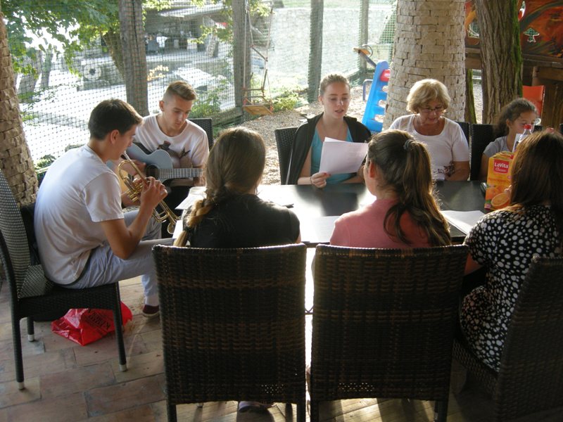 On Saturday afternoon, students took part at literary, music, drama, fairy-tale and art workshops. We asked what was happening in a magic place and each group of children and youth offered their answers. Students in literary workshop noted down which place was magical for them. Their mentor was Slavica Pavlović.