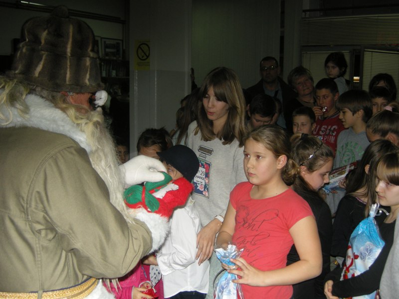 There were 69 presents - 19 for pre-school children, 44 for elementary school and 6 for secondary school students. Students of supply teaching lessons of Slovenian prepared a programme for him. They spoke about the happiness. Nowadays, when all our wishes are directed to happiness we, very often, think about what we wish for ourselves. Is happiness a lot of money or a lot of free time? Good friends or interesting computer games? Students presented thoughts of poets and also their own wishes. Children are happy when they do not have too much homework, when they get good grades and also when they go to Slovenia. When you are young, happiness is when you choose courage and do not allow the big ones to scare you off. This was presented to us by our youngest pupils who performed a puppeteer play. We also saw a short play “How Mr. Philodendron looked for happiness”. The story was written by Andrej Rozman Roza, and it was played by pupils from Slatina. They say that only a happy person can make other people happy. This evening, both chaildren and Santa Claus brought a lot of joy among the attendees who filled out the premises of the National Minorities' Club.