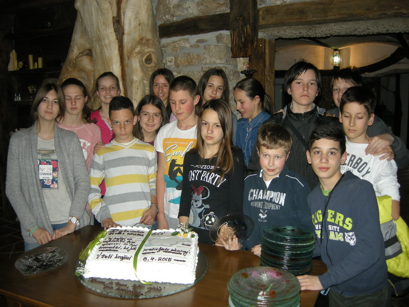 On Wednesday, 8 April, adults and children visited Bela krajina. We were guided by Mrs. Milena Pavlovič. In Elementary School Podzemelj a pleasant welcome was prepared for us while we were greeted by school principal Stane Vlašič and former principal, a renown humourist Toni Gašperič. Pupils of Elementary School Podzemelj sang several songs for us whereas our students of supply teaching lessons of Slovenian prepared a programme themselves. Both children and adults recited Župančič’s poems.
