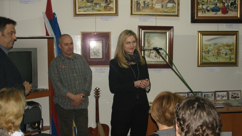 Motives for paintings, as the author himself stated, are found in near and far vicinity of places and people. He gets the inspiration from already existing paintings by well-known authors e.g. Martin Gaspari and others, whose works we can find all over the world. Simon Šubic paints country legends, customs, people and, in his own manner, wherever his exhibition is organised, along with a song, transfers part of richness of Slovenian culture. Mrs. Vesna Vukšinič Zmaić, general secretary of SIM greeted all the attendees on behalf of SIM whereupon Head of Consular Office in Banja Luka Branko Zupanc commended close cooperation between our Association and SIM in the implementation and successful organisation of the exhibition on the occasion of marking the Slovenian cultural holiday. On that occasion, he invited the attendees to enjoy the exhibition, which gives versatile view to the past, country legends, customs and people. Having said that, he opened the exhibition.