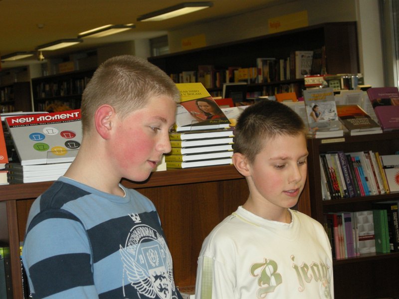 At the pronunciation of prize winners they found out that they won the second prize. On that occasion they met the authors of comics Boštjan Gorenc – Pidžama and Matej de Cecco. Matej showed how comics are made and after the prizes were awarded all guests got a chocolate-fruit Šnofi. David, Đorđe and their sister Tamara toured Ljubljana thereafter, while beautiful prizes will remind them of the nice event.