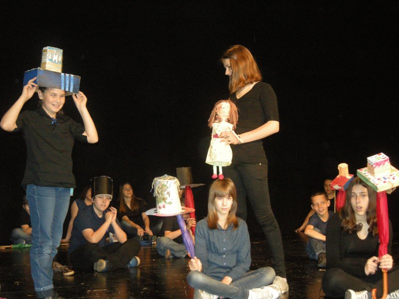 On Friday, they were making masks and puppets the whole day, on Saturday the decided on the roles and practiced and on Sunday they already showed results of their work. A performance “A balloon can also be my umbrella” resulted from the workshop, while children played it to audience who filled in theatre Jazavac. A fairytale by Ela Peroci took us to the Land of Hats. More than 30 children made a performance accompanied by music – one could hear sounds of accordion, guitar and violin. Photographs can tell more than words although it is rather difficult to describe what the children had to make and learn in order to make the performance.