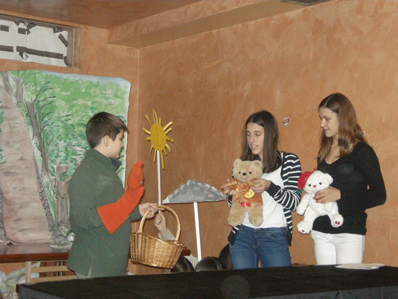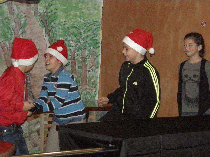 Students of supply teaching lessons showed that they were very diligent throughout the whole year. Children from Slatina made a puppet performance Katarina and the King, the youngest students from Banja Luka a puppet performance Bon appetite, rabbit, older children from elementary school a puppet performance Elmer and Bear’s Honey Biscuits. At this year’s performance we had guests from Teslić. They presented themselves with songs White Snowflake and Snowflakes. The hall was full of people and they all greeted the participants with a loud applause. Thereupon, Santa Claus gave them presents and then it was time to have a relaxing time with some buffet.