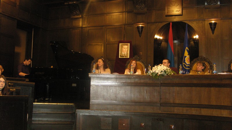 It was an evening of presenting poetry of young poets. Aleksandra Čvorović, Tanja Stupar- Trifunović and guest, poet from Slovenia, Vid Šteh read their poems. Translation of poems from Slovenian to Serbian was done by writer Zdravko Kecman, and they were recited by Ljiljana Sukara. Special atmosphere in the hall of Banski dvor is not only owed to authors but also to an excellent pianist Hajrudin Muhić.