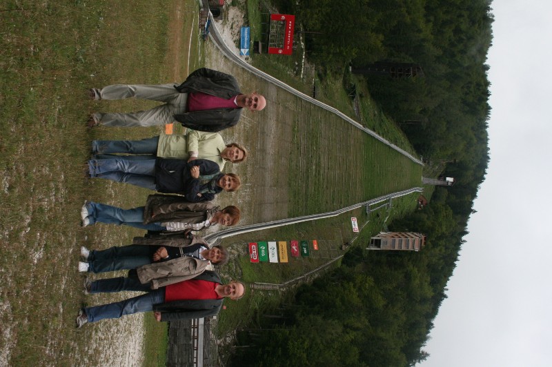 The second day of our visit was dedicated to the visit to the beautiful sights of Gorenjska. The Kraljičs were our guides. They took us along the road to Jesenice and Mojstrana. In the vicinity of Mojstrana is the village of Dovje which had a mayor who built cottages and was a national awakener. His monument is located near the road with his hand pointed towards the heights of Mt. Triglav. Fog that followed us prevented us from seeing the heights. Never mind, we continued towards the Slovenian Mountain Museum, visited it and continued towards Mt. Triglav. We saw the Peričnik waterfall there. Those who climbed close were splashed a bit. We continued towards the Aljaž Centre where we refreshed, had some fresh air and returned towards Kranjska Gora and made a short stop at the spring of the Sava River. The last stop was at the ski jump Planica.