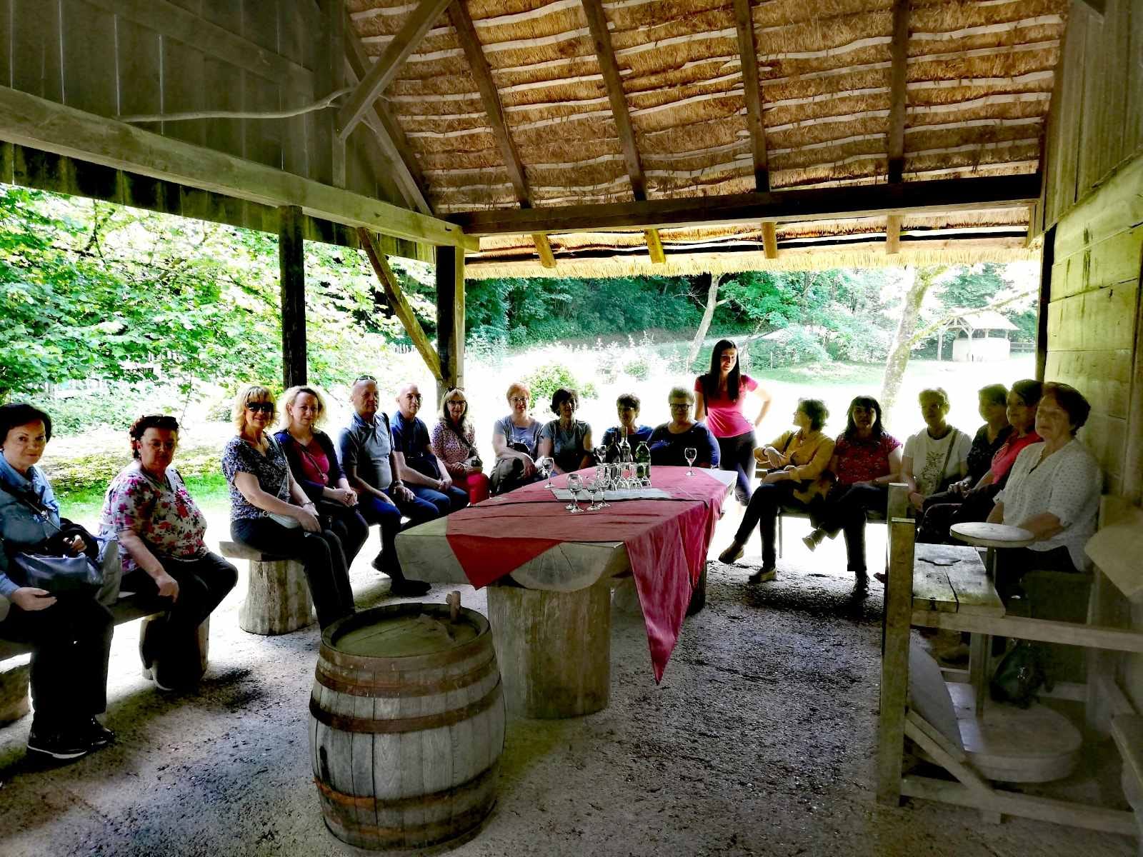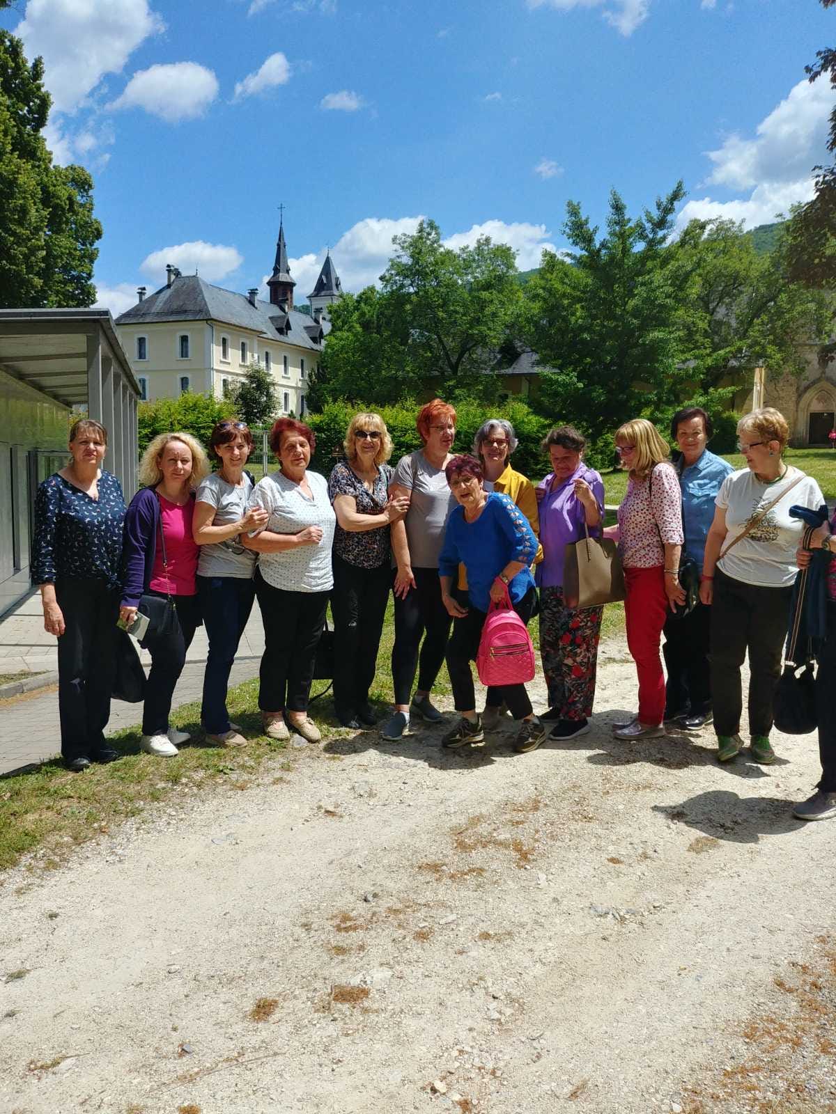 On the way to Šentvid, the choir members visited one of the few inhabited Carthusian monasteries in Europe, Pleterje, in Šentjernej municipality. The Gothic monastery church from the 15th century resounded with the melody Po Jezeru, enthusiastically sung by the choir members. Our Slovenian hosts showed us a village in the immediate vicinity of Pleterje, which is a testimony to tourists of how the peasants of the Šentjernej municipality lived several centuries ago. In an old country inn, we tried homemade wine and hand-made apple juice. In the village there is a house with a black kitchen, a barn, a poultry house, just as if we stepped into the 19th century.