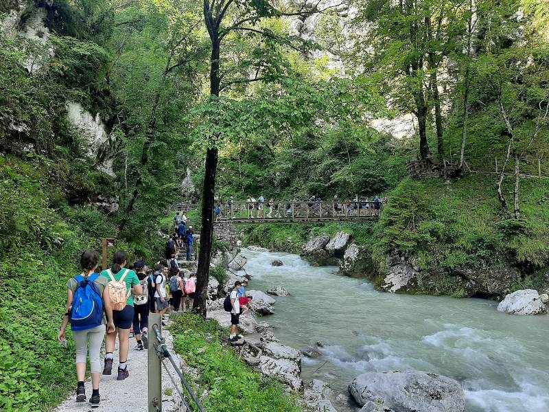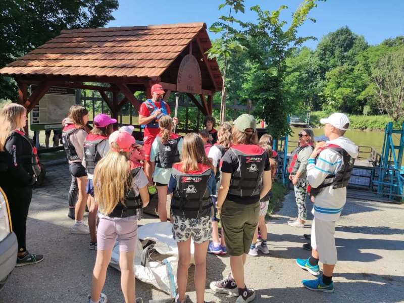 The children were from 15 countries. They had active learning in the morning and a relaxing program in the afternoon. For example, they tested how cold the Soča river is, and if they wanted to move around and socialize, they would go to the nearby playground. As the weather was bad in Slovenia that week, the rain drove them indoors, so they used the time to meet the permanent residents of the Soča home: the snakes Marko and Pepi and the lizard Gomez. They were also very hard-working mountaineers - they enjoyed the beds of the Tolminka and Zadlaščica rivers. Soča is always beautiful, even when its color is not emerald and does not shine. As this day was not suitable for swimming, they tried their hand at throwing frogs. A rainy afternoon is perfect for creative workshops. They learned the tying technique - macrame, made a friendship bracelet and a gift box. The Soča River did not allow them to raft down it as planned, so they learned a lot about water sports and went to see it one last time in its wild form.