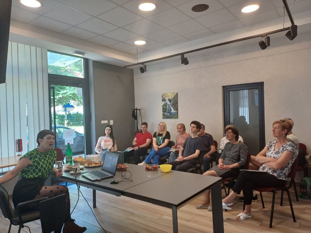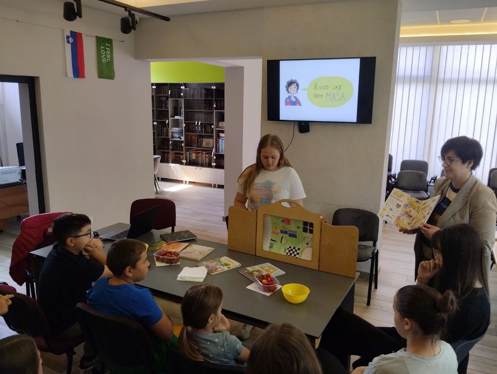 Maša Ogrizek, cultural sociologist and philosopher, has been self-employed in culture since 2008. She first worked as a critic and journalist, but in recent years has become an increasingly established youth writer. She presented her works to students and members of the Association - Koko Dajsa in the city, Luka from the block, The Lady with the Hat, The Lady with the Monster, the fantastic novel Fox Moon... At the beginning of the presentation, the students presented Koko Dajsa with the help of kamishibai.
