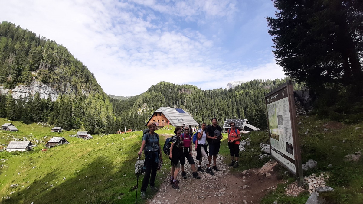 The team was united, rested, in a good mood, and we were all ready to leave as agreed. The morning was clear. We decided to leave early, as we had rain as forecast for afternoon. The trail was not demanding, we moved slowly, without hurry, enjoying the valley surrounded by rocky mountain peaks. In front of us appeared an imposing lake in all its beauty, and the water overflowed in a spectrum of green color from pale green, through turquoise to emerald green. It was the Great Lake or as it is called Jezero v Ledvicah. Due to the predicted rain, we did not go down to the lake, we continued our journey. Another small climb and we were approaching Koča na Prehodavci (2071 m). Sunlit, on a hill surrounded by mountain peaks, a scene like from a fairy tale. Approaching the house, we noticed the message "If you are a mountaineer, put the trash in your backpack". We decided to enjoy this beauty a little longer. The lodge on Prehodavci is located at 2071 m. We returned to the lodge around three o’clock and while we were eating delicious mushroom soup it started to rain. We were really lucky. We played rummy after lunch and spent the afternoon socializing. When the rain stopped we walked around the Twin Lakes. The agreement was to leave early again in the morning. Despite the light rain in the morning, the clean ten team set off back as planned. Soonafter, the sun appeared again and accompanied us to the van. We quickly changed clothes and set off to visit first Bohinj, and then Bled.
