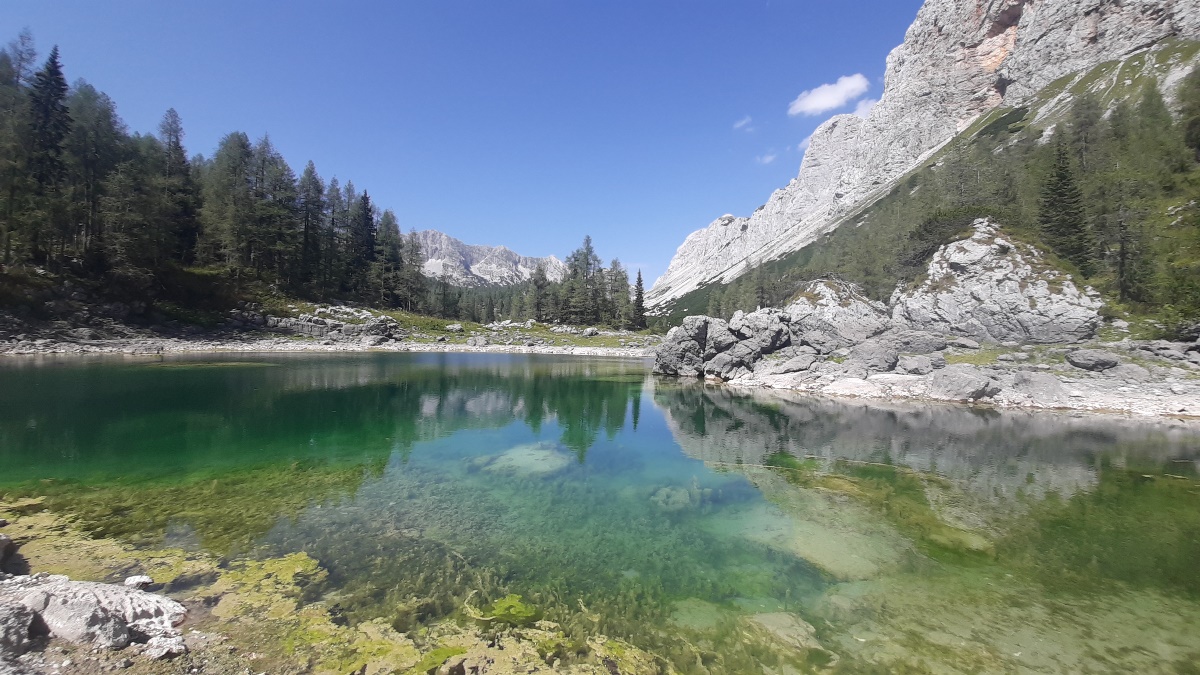 We rented a van, Ivan was the driver, and already at two o'clock, early in the morning, we picked up the cheerful passengers one by one and headed for the border. Everything went flawlessly, there was no traffic on the road on Friday. After the first refreshment in Slovenia, we continued our journey towards Bled and Bohinj and the mountain Blato (1147 m). There was a huge crowd on Blato Mountain and we barely found a place to park. We put on our boots, strapped our heavy backpacks on our backs, and started up the hill around 10:30. Backpacks were pressing us, it wasn't easy, but we didn't hesitate, we climbed up the hill. The weather was beautiful, just right. We looked at the proud pine trees that stuck up, the peaks of the mountains that rose above them, illuminated by the sun, and we absorbed that beauty. Our legs went by themselves and in an hour we reached Koča on the mountain by the lake (1453 m). When we came out of the forest and saw a home full of flowers, lit by the sun, and cows grazing around it, we had to stop to admire that extraordinary beauty. After a short break, we had to move on. Half an hour's walk away was the Dedno polje mountain. These were cottages located in a sunny valley at the foot of the mountain peaks. We continued our journey towards Ovčarija. We were about halfway there. We went to Koča near seven lakes (1685 m) via Prodovo, where the landscape was like a fairy tale. The path was rocky and steep and we had to be very careful. We reached our destination in two and a half hours. First we saw the Twin Lake and we couldn't resist, we headed towards the lake, we rested and put our tired feet in the water with pleasure. The peaks of Tičarica reflected in the lake. There was a lodge next to the lake, which was swarming with mountaineers like a beehive. Already a bit tired, we ate something, agreed to start walking in the morning at half past 7 and went to sleep full of impressions.