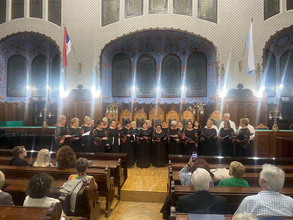 The festival took place in the Ceremonial Hall of the City Hall in Subotica, which is a masterpiece of architecture from the Art Nouveau period. In a beautiful setting, we had the opportunity to enjoy performances of Slovenian folk and modern songs, performed by choirs of Slovenian societies from Belgrade, Novi Sad, Zrenjanin, Banja Luka and the host city of Subotica, as well as the singing group ''Studenac'' from Pivka. After a successful performance of our choir, which presented itself with three numbers: ''Mlade oči'' - Jure Robeznik, ''Pridi nazaj'' - Andrej Maroša and ''Jesenje lišće'' - Bogoljub Dimić, under the conductorship of Vanja Topić Vještica, followed by a joint gathering of participants at the Croatian Cultural Center ''Bunjevačko kolo'', not far from the festival location.