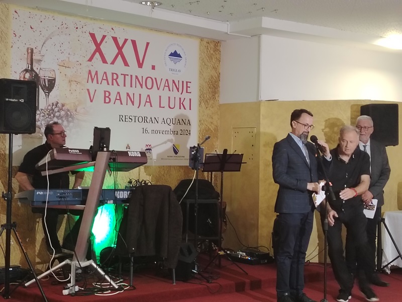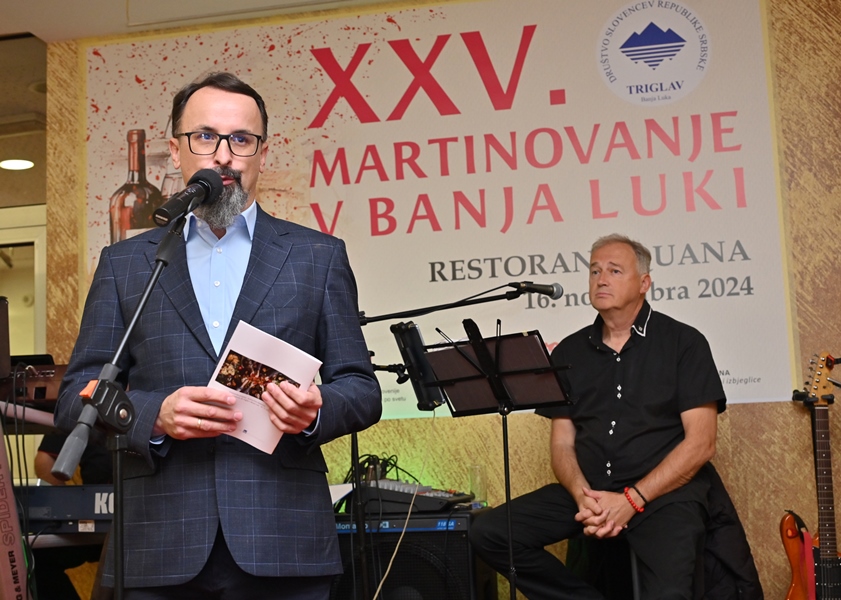 On November 16, 2024, we gathered at the Aquana restaurant in Banja Luka with many old and new friends to traditionally celebrate the national holiday of wine baptism. The President of the Association, Mladen Lunić, welcomed everyone present. Then, greetings were extended by Dušan Tomažič, our friend from RTV Slovenia from Maribor, who hosted the program and announced the representative of the city of Banja Luka, Mrs. Mirna Savić-Banjac, advisor to the Mayor of Banja Luka. She conveyed greetings from Mayor Draško Stanivuković and congratulations on the jubilee 25th St. Martin's Day, an event that is already well known in Banja Luka, and wished many more successful events in the Association. After Mrs. Savić-Banjac's address, the attendees were greeted by H.E. Damijan Sedar, Ambassador of the Republic of Slovenia to Bosnia and Herzegovina. He emphasized that he was proud of the Triglav Association and its good work, especially the fact that through its activities it brought together all generations in its work. He mentioned that next year he would organize a trip to Planica, where ski jumping is held, and that students who regularly attend additional Slovenian language classes in all associations in BiH will participate in the trip. In this way, he wants the most regular students to be rewarded for their effort and work and to establish even better ties with their homeland, Slovenia.