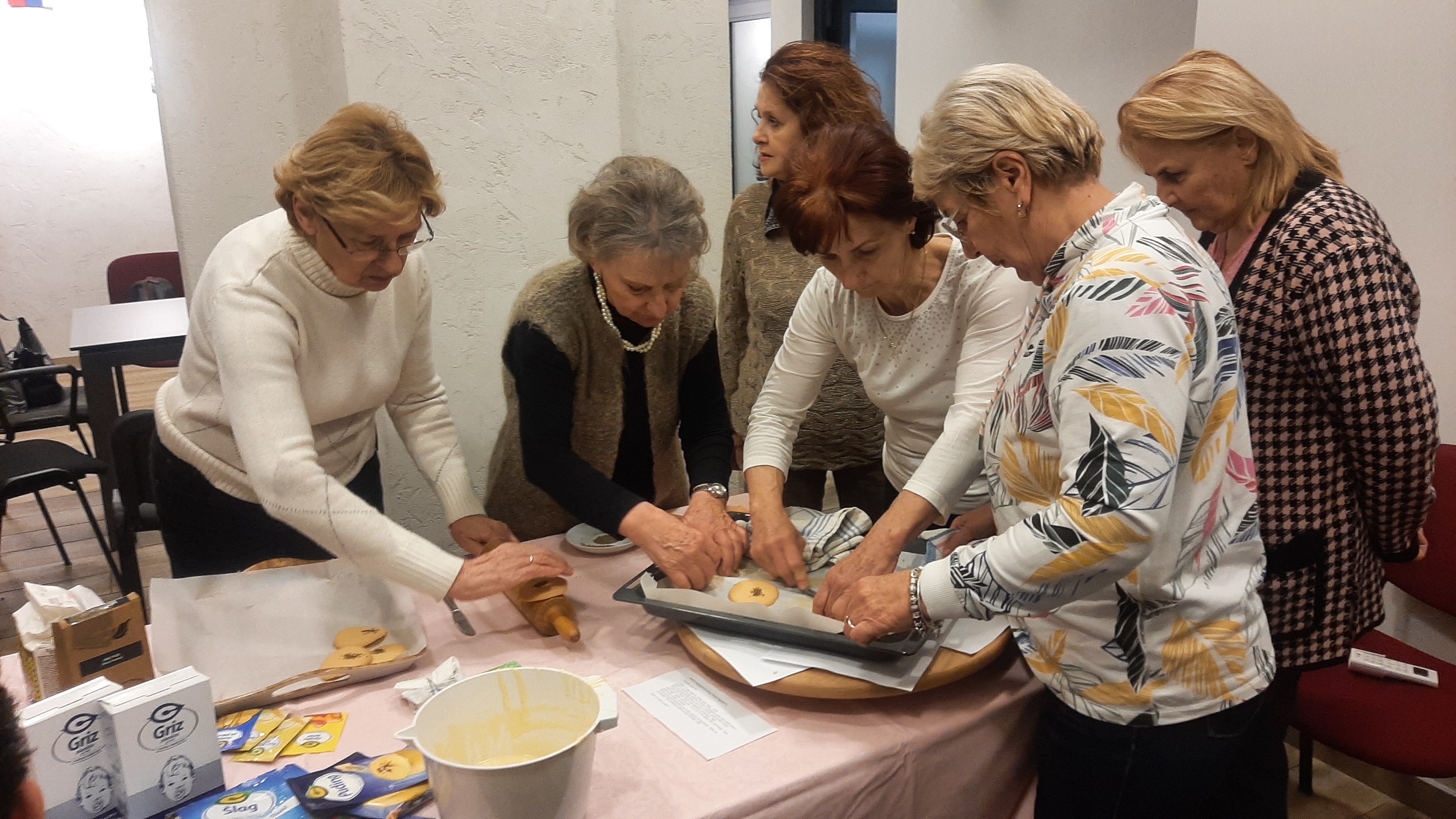 First, Nataša, with a lot of emotion, explained the process of making anise biscuits, but not from the Internet, rather the way her mother and grandmother used to do it. Then she started making a mixture of eggs, sugar and flour, of course, with the assistance of experienced housewives Dubravka, Zdenka, Olga, Majda and others. Step by step, the anise biscuits were ready for the oven. Under the watchful eye of Nataša, in ten minutes, shaping began, using a glass or a roller, whichever is easier for someone. Of course, we couldn't resist the smells, so we tried the first round even before the second one was baked.