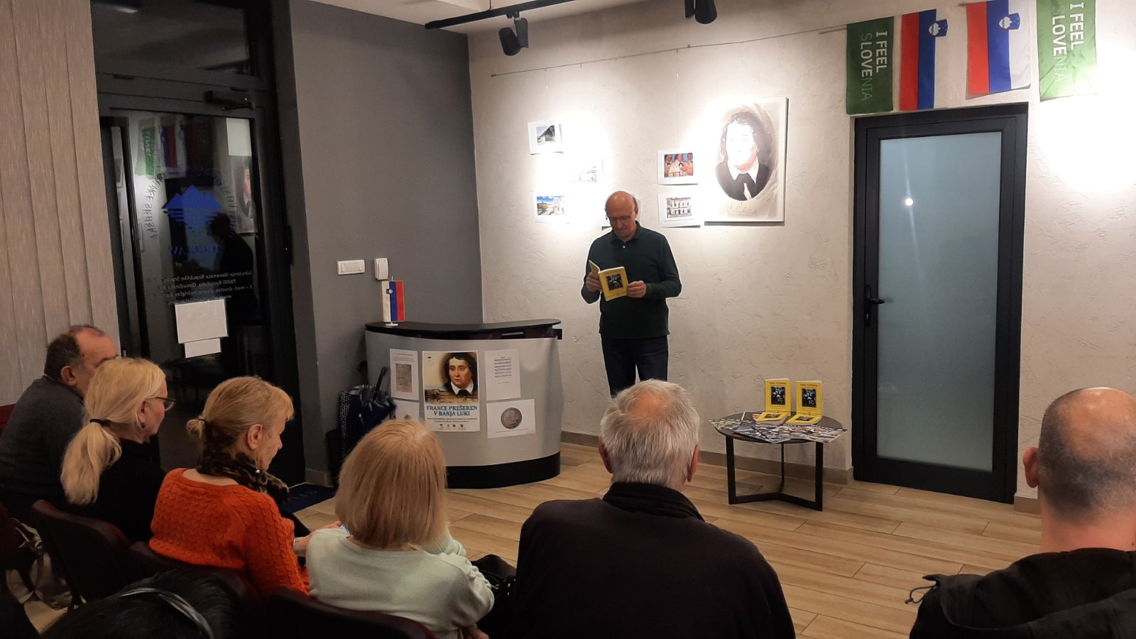 Our Slovenian language teacher Metoda Perger, who is the conceptual organizer of this gathering, introduced us to the Prekmurje poet Feri Lainšček. She read his poem in the original Prekmurje dialect, which aroused our special attention. After that, we heard the Macedonian language in the verses of the poet and revolutionary Koča Racin, which were recited by Zoran and Jelena Mitrovska. The poem by Jan Skacel in Czech was recited to us by Goran Stojković, a member of “Česka beseda”. Mladen Prodan, a member of the Triglav Association, who is also a member of the Patrija Jelovac Homeland Society from Prijedor, recited his verses in Serbian, as did Ljiljana, who introduced us to the little-known love poetry of Petar Kočić, verses addressed to his only love, his wife Milka. I introduced the audience to the Slovenian poet Simon Gregorčič, choosing from his wide opus the humorous "Svarilo" and the defiant, patriotic "Na bregu". The teacher concluded the poetic part of the evening with verses by Tone Pavček.