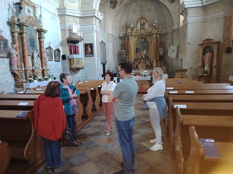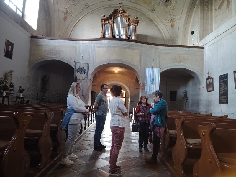 After a short walk, we continued our journey to the village of Števanovci in the municipality of Monošter, where our hostess, the director of the Bilingual Primary School "DOŠ Števanovci" Agica Holecz, was waiting for us. We settled in a home next to the church, and after dinner, in a conversation with Agica, we heard about the history of the village, which was named after the Cistercian abbot Saint Stephen Harding from England, and then visited the church dedicated to him. The current church was built in 1785 on the site of the previous chapel, and the interior is richly decorated and painted. In 2005, a memorial plaque was placed in the left aisle of the church with the names of the parish priests and chaplains who served here between 1785 and 2001. Among those priests there were many non-Slovenian nationalities, but many learned the local Slovenian dialect and celebrated mass in it.