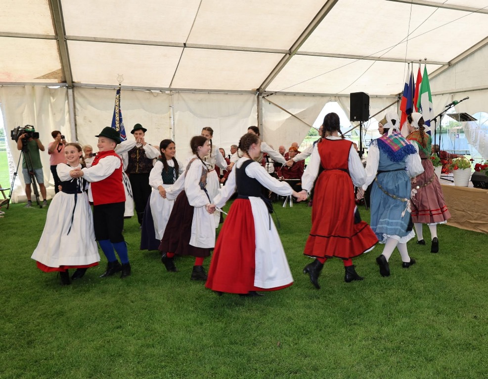 On Saturday, May 31, 2025, the children's folklore group of the Triglav Association, with its performance of Koroška dances, participated in the cultural program marking the 100th anniversary of the founding of the Local Community Pince Marof - Benica, located in the municipality of Lendava, in the far northeast of Slovenia.