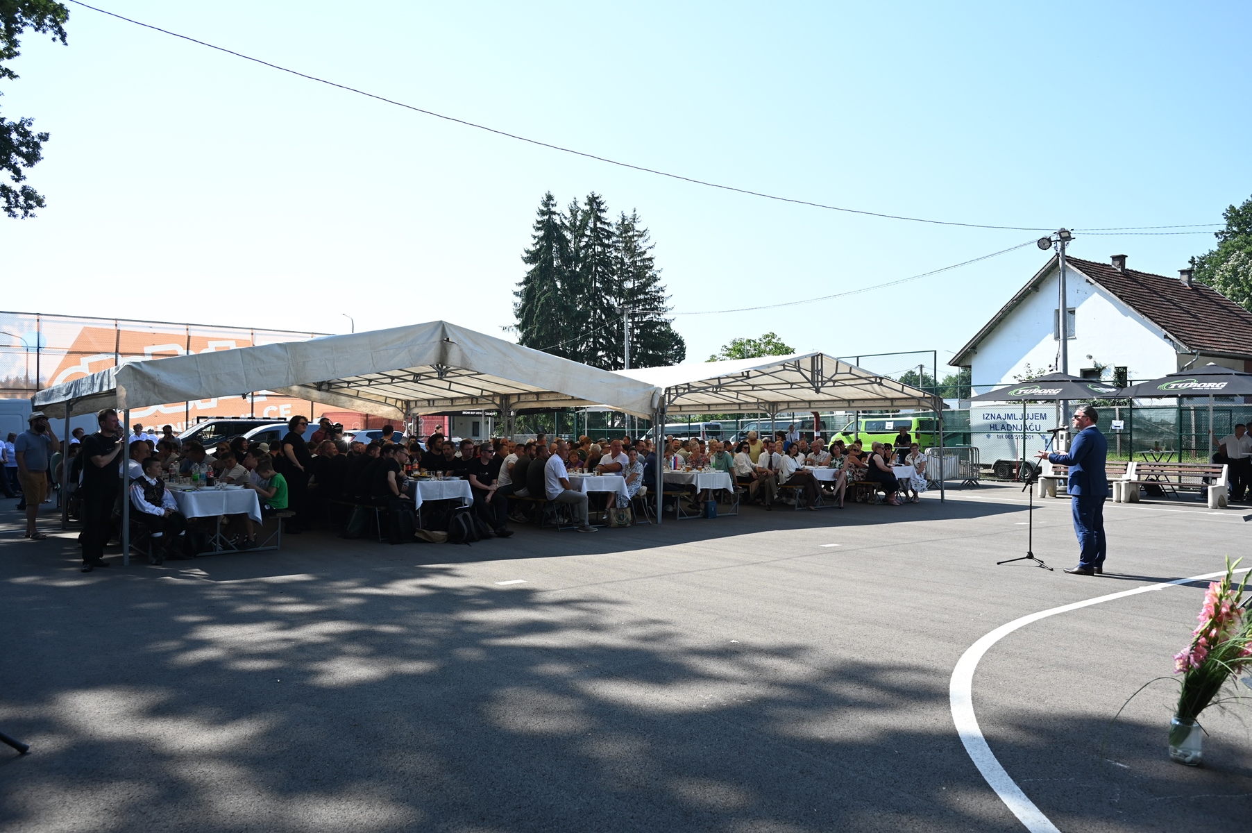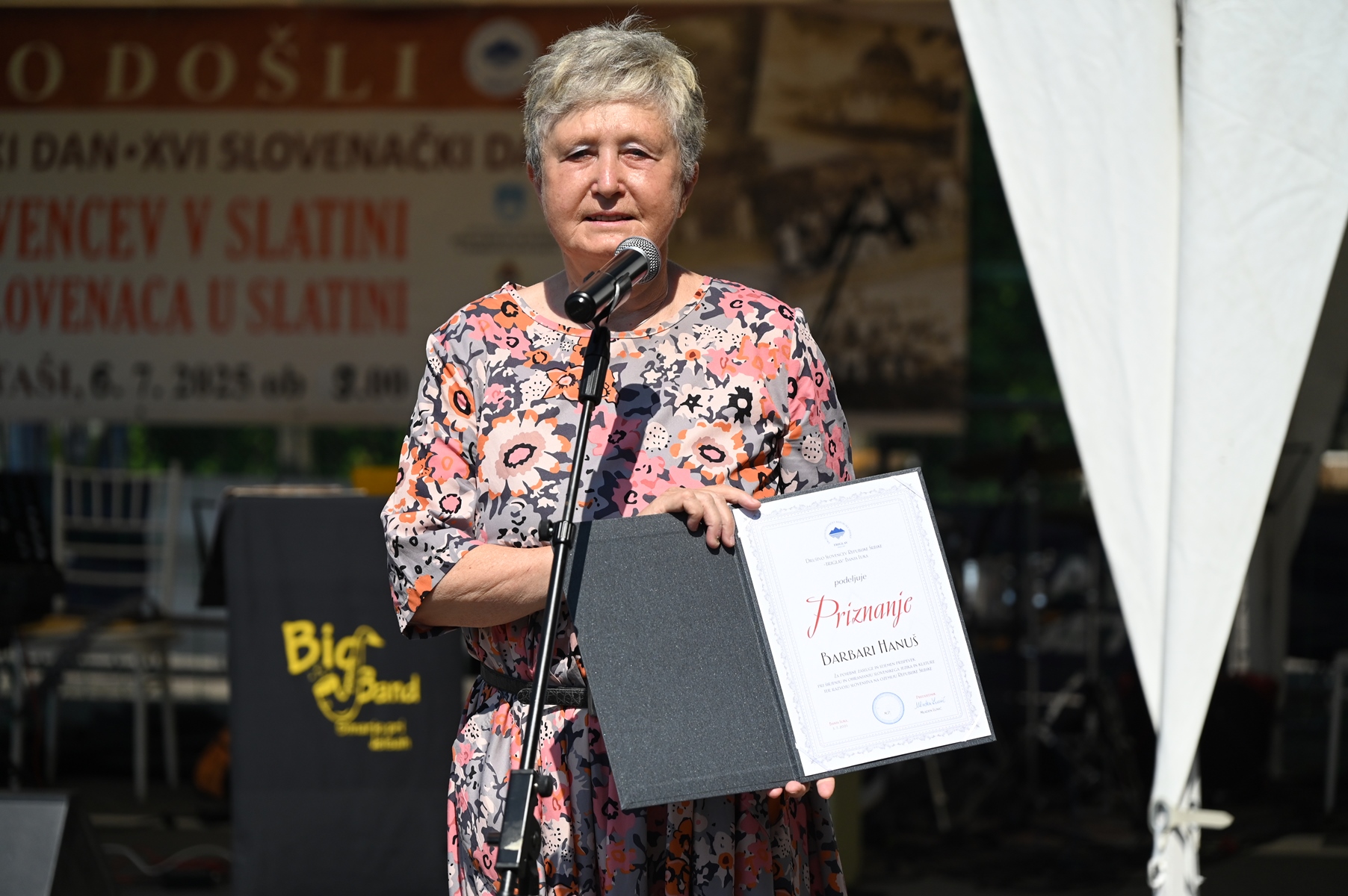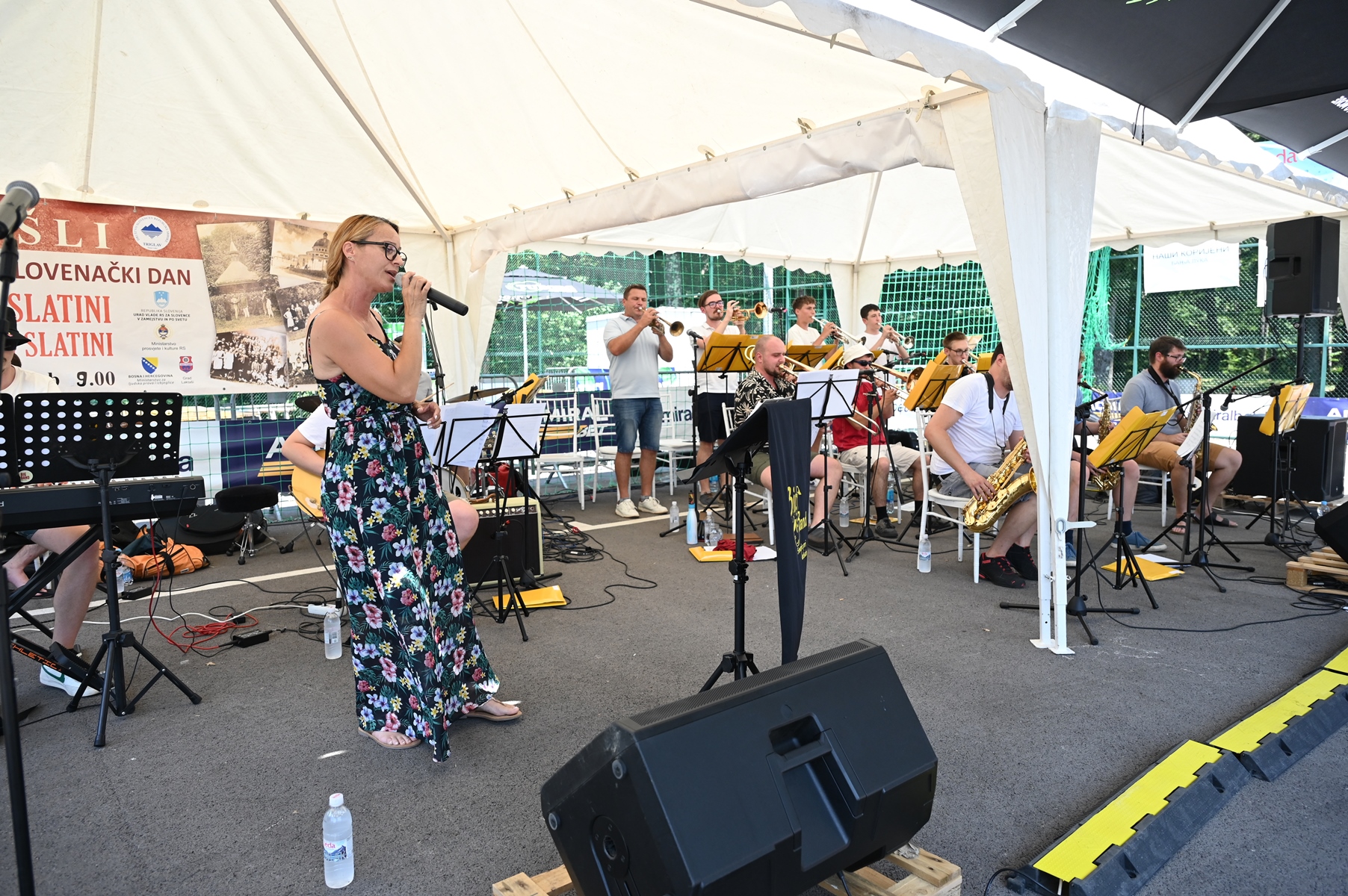 In the entertainment part of the event, for the first time in Slatina, a big band orchestra performed, which was also the 40th guest performer at the Slovenian Day celebrations held in Slatina. These were the boys and girls from Šmarje pri Jelšah, led by conductor Bojan Logar. Despite the hot afternoon, their strong and good will led them to show us a part of their repertoire, which consists of classical jazz music to Slovenian popular songs. The gathered guests had the opportunity to enjoy their performance, later with the vocal support of the ''FaVoZa'' choir, but they also regret that it was short-lived, due to the time of the guests' return from Slovenia, but also the need to prepare the location of the event for the continuation of the 5th Petrovdan indoor football tournament, which was briefly interrupted in order to celebrate Slovenian Day.