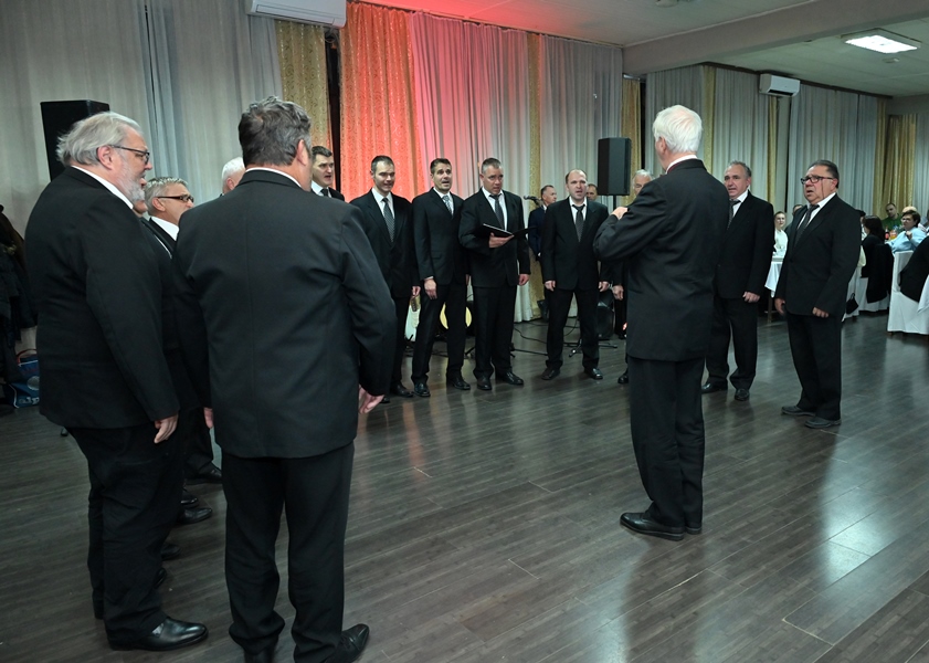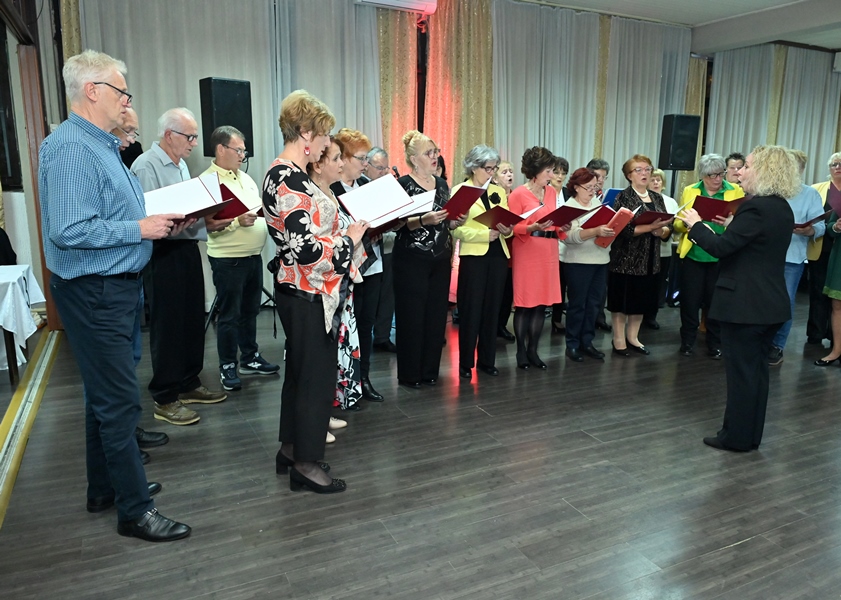 This was followed by the performance of the children's folklore group of the Triglav Association, which performed a mix of traditional Slovenian dances, followed by the female vocal group Bisernica and the male choir Kromberški Vodopivci from Nova Gorica. Their well-rehearsed performances, under the conductorship of Bogdan Brecelj, delighted the audience and were an excellent introduction to an evening filled with song, dance and socializing.