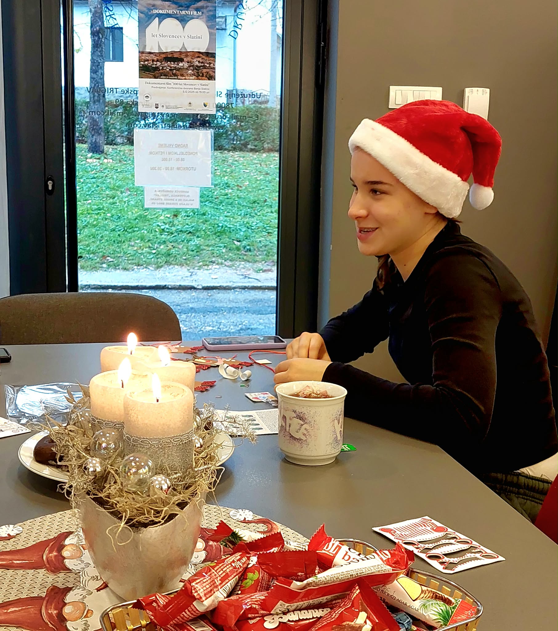 We talked about the Slovenian tradition of giving gifts in December, the younger students painted all three good December men, Saint Nicholas, Father Christmas and Santa Claus, while the older students made decorations and festively decorated the premises of the Triglav Association, where we have classes. We listened to Christmas carols, drank tea and ate gingerbread cookies covered in chocolate. Slovenian Saint Nicholas did not forget about gifts this year either. Every student received a gift, because this year, teacher Metoda was entrusted with the important task of spreading the Slovenian spirit of Saint Nicholas to all places where children diligently learn the Slovenian language. And it will be like this in the future.