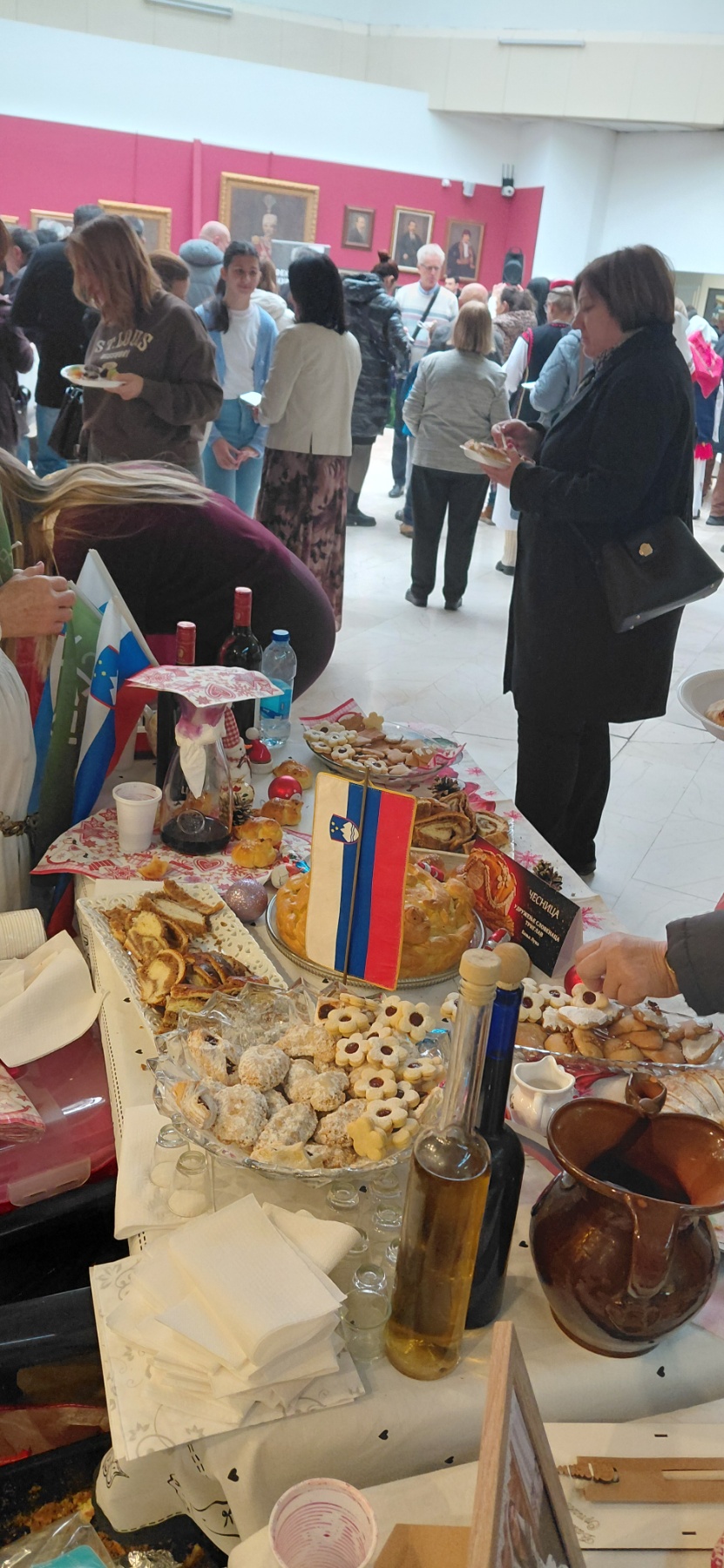 Our culinary section happily accepted the invitation to participate in this Festival. This year, everything was easier to organize, because more of our culinary section members were involved in the preparations for participation in the Festival. The positive energy and goodwill of the participants made our stand very rich and diverse. Olga's excellent wine attracted a large number of visitors. Our hardworking team was led and organized by Bernarda, and the other members: the two indispensable Olgas, Jasna, Dubravka and Ljiljana prepared Christmas desserts: poprtnik, potica, gingerbread, paws, etc.