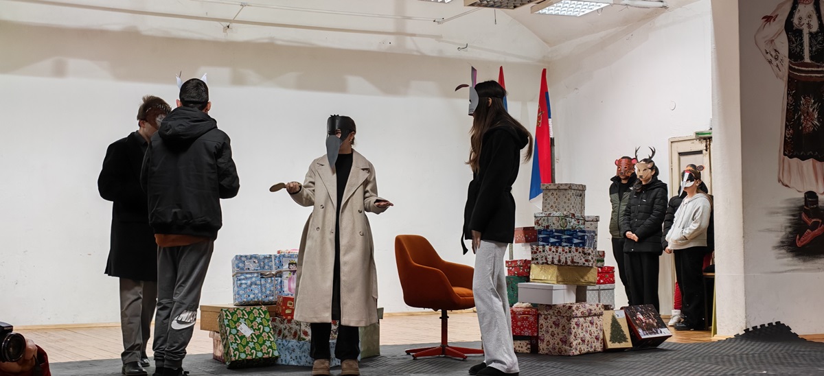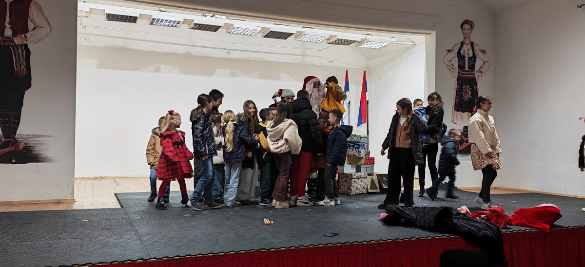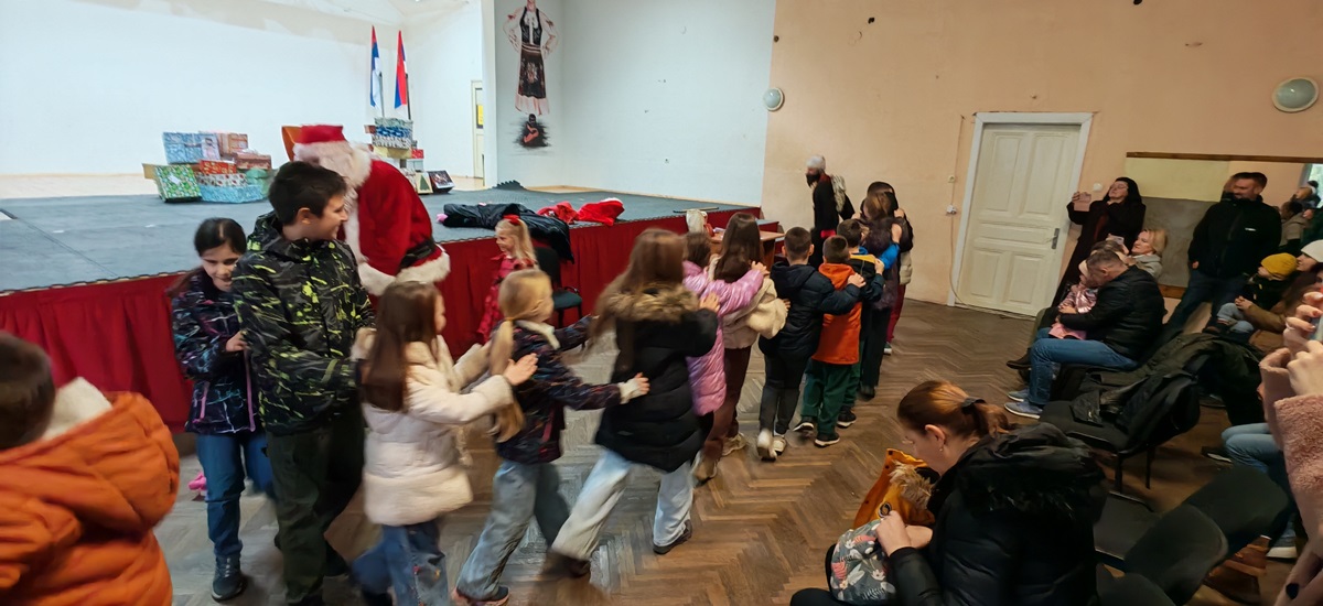 In a slightly different setting, with a Christmas tree made of gift boxes, the youngest members of the "Triglav" Association welcomed Santa Claus at the premises of the Pelagić Cultural and Artistic Association in Banja Luka.