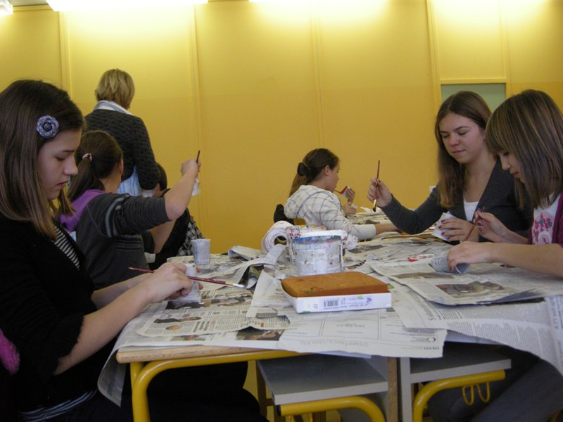 On Thursday, 6 December afternoon we went to the school to watch a charitable performance, prepared in cooperation with UNICEF. On Friday, 7 December, we participated in a creative workshop led by Rada Kos, editor of magazine Prostočasnik. Look at the photographs how we made Santa Claus! In the afternoon we met with writer Tadej Golob and illustrator Ciril Horjak in Trubar's house. They presented a book Zlati zob and each pupil got one copy. We were not only their audience, to the contrary, Ciril Horjak moderated a workshop of making comics which resulted in really interesting comics. On Thursday and Friday we went to the city centre and visited Prešeren's monument, Tromostovje, Mesarski bridge, market, Robbov vodnjak and city hall. We walked around the streets of Old Ljubljana and felt the December pulse of the city. Saturday was reserved for the trip back. Strong connections were made among pupils from Banja Luka, Slatina, Prijedor and Ljubljana and we all look forward to seeing pupils from Ljubljana in our city in spring.