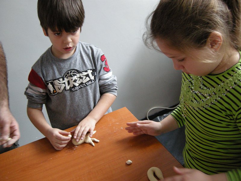 In the workshop lead by Aleksandra and Marina, children painted eggs – not the real ones but those made of paper. They glued them to cardboard, thus making beautiful posters. Franci taught the workshop participants how to shape rabbits and pretzels of pastry, while skilled children’s fingers also made fish. They baked it all and some of them even ate their art work immediately. During the fourth workshop we made invitations for performance »A balloon can also be my umbrella«. The performance will be prepared by students of supply teaching lessons of Slovenian and lead by puppeteers Jelena Sitar and Igor Cvetko. We can already invite you to fly away with us on 12 May to the Land of Hats. The performance will take place in theatre »Jazavac« at 11.00hrs.