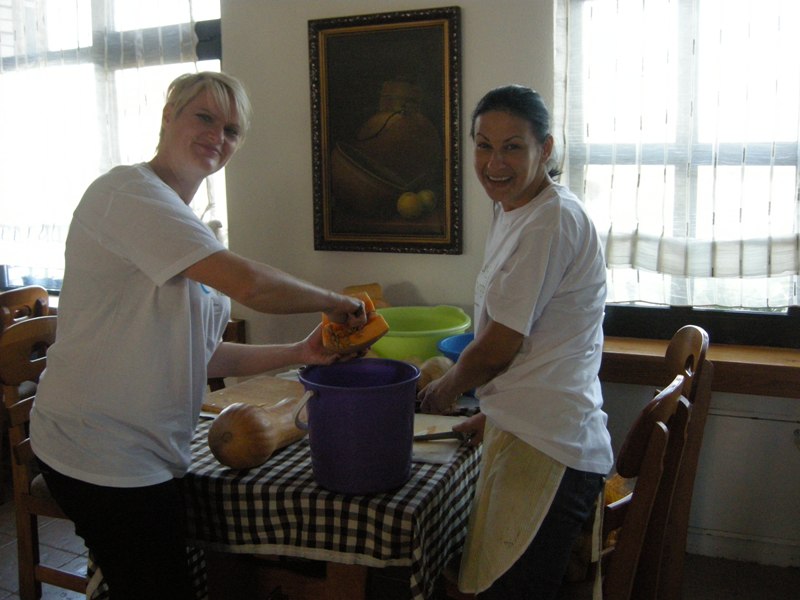 In the magic place one cannot stay hungry. Dinner was under the care of participants to culinary workshop. They cooked under the lead by Barbara Pribožić Leka. There were 130 hungry mouths and they managed to feed them. They baked homemade bread, prepared cream and cheese, made pumpkin soup, goulash, Kranj sausage, pickled cabbage and potato salad. They did not forget the dessert – they made gibanica of Prlekija. Prior to dinner, children told us something about Slovenian cuisine and the importance of the dishes we all were thrilled to taste.