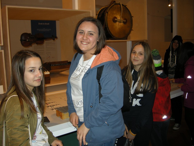 On Monday, April 25, we were received by the principal of Grammar School, where they hosted our students. After the presentation of the Grammar School and joint reading and music lesson, we went for a tour of the city. We started our tour on the Dragon Bridge, continued on Butchers’ Bridge, Triple Bridge, Cobblers’ Bridge … We sensed the pulse of Ljubljana market place and clamour on Prešeren, City and New Squares. We continued by National and University Library, French Revolution Square and all the way to the Plečnik’s house. In his house, we sensed the spirit of the big artist, who left important marks to the city. We also stopped by the Trnovska Church and mentioned France Prešeren. We visited the Križanke outdoor theatre and took Vega’s Street to go back to the Congress square. After lunch, we visited the National and University Library, City Hall and secession Ljubljana, while an electric vehicle Urban took us to the Ljubljana Fortress. We climbed up the observation tower and were happy to have a good view on Mt. Triglav. At Plečnik’s house, National and University Library, in the city centre and fortress we had great guides and heard a lot of interesting stories so everything we experienced that day interconnected in a beautiful mosaic.