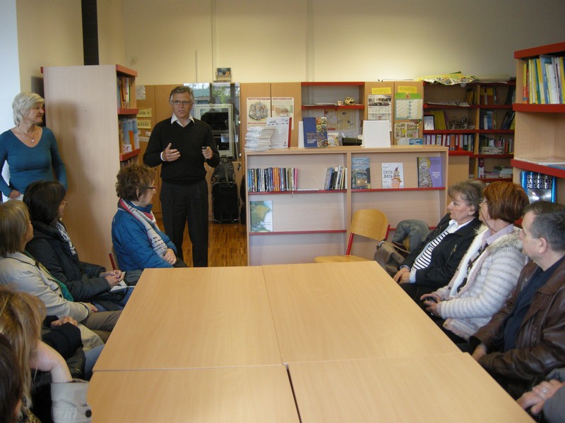 On Sunday, April 24, our pupils, together with students and other participants to the excursion visited the Technical Museum of Slovenia. Following the tour, they went to their peers and in the morning together to school. They were warmly greeted at school and after the lessons the parents of their hosts made sure they had a pleasant afternoon. On Tuesday morning also came others and we were welcomed by librarian Tina Janc, who also organised the exchange of pupils, and principal of the school Matjaž Zajelšnik. Librarian Tina presented each pupil with a book by Simona Lečnik Slovenian Language and I, book about how learning Slovenian is not that simple. Vice president of the Association of Slovenians Triglav Nataša Kajmaković thanked for the cooperation to the principal and librarian on behalf of the Association.
