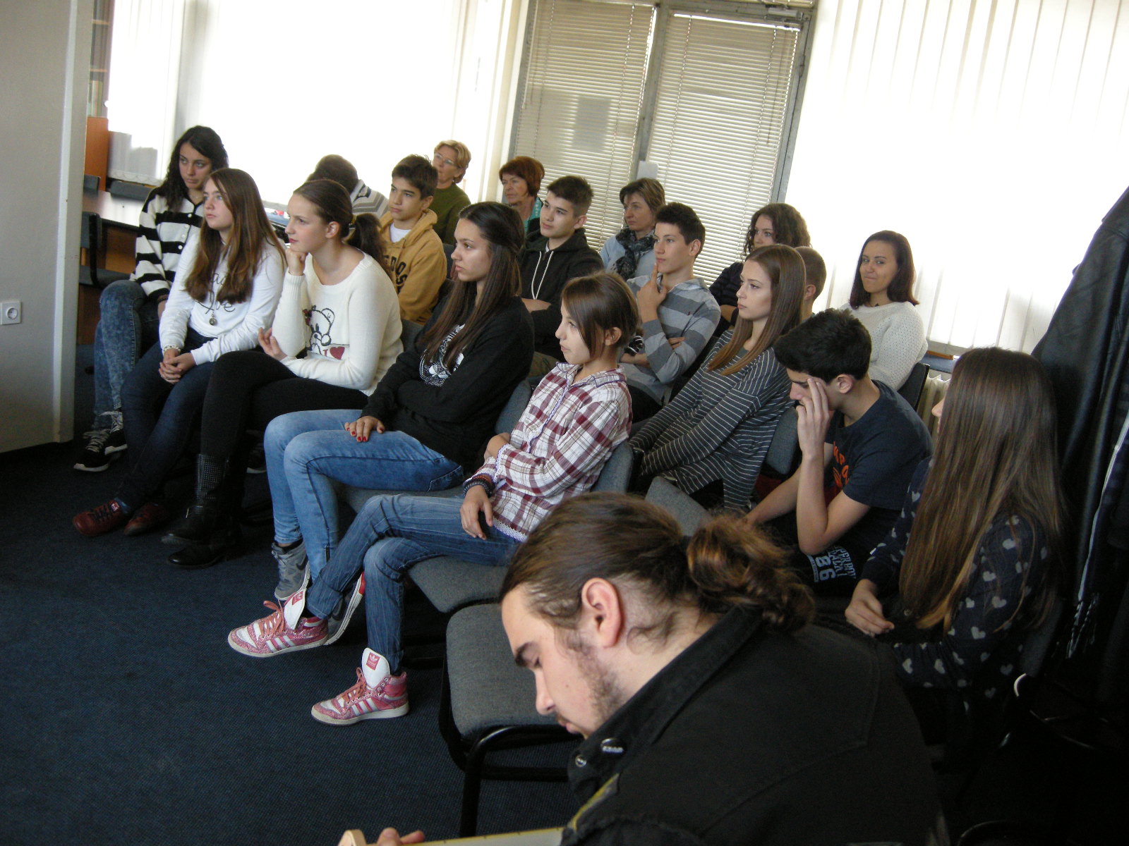 The last Saturday in October was festive. Slovenians do not mark only 1 November, All Saints Day, but also 31 October, Reformation Day. We remember Primož Trubar, author of first Slovenian books, as well as other protestant writers. Reformation period means the beginning of Slovenian literature, that is why the Reformation Day is a cultural holiday. We dedicated time to singing during supply teaching lessons. Professor Natalija Veselič Martinjak moderated two workshops: the first one for children and the second for youth and adults. Žan Žak Martinjak played a guitar accompanying the event. Children learned two songs „Ni copatka“ and „Enkrat je bil en majhen škrat“, while youth and adults learned „Mrtva reka“.