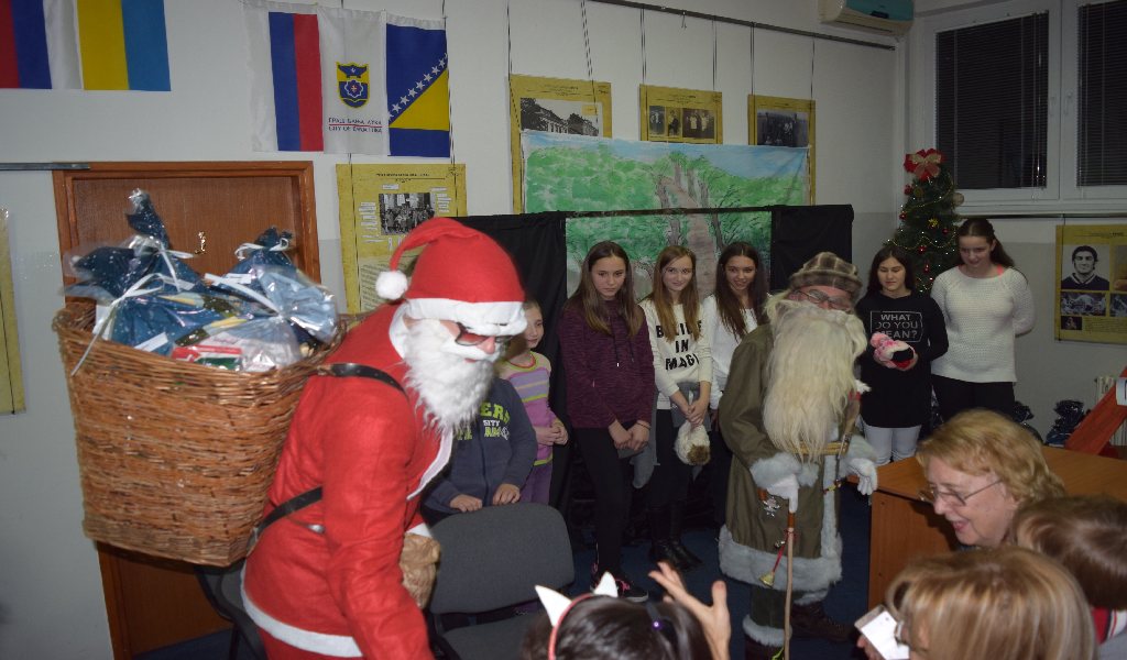Children in Banja Luka were visited by as many as two good men: Father Christmas and Santa Claus. They arrived together, one in red clothes and the other one in grey.