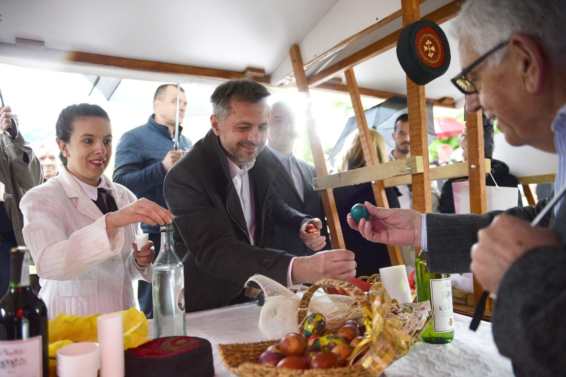 On 18 April 2017, in the Bana Milosavljevića Park everything was prepared for the national minorities to present their work to their fellow citizens. Seven national minorities (Cultural Association of Ukrainians “Taras Ševčenko”, Association of Slovenians of the RS “Triglav”, Association of Italians Banja Luka, Czech Association “Česka beseda”, Cultural Association of Macedonians “Vardar”, Association of Jews Banjaluka and Association of Montenegrins and friends of Montenegro) presented their work and cuisine on stands. The stands were visited by mayor Igor Radojičić, head of Department for Culture, Tourism and Social Policy Natalija Trivić and a member of city assembly representing national minorities Saša Čudić. “National minorities are said to be the treasure and bridge towards their home countries but they also enrich any place where they live with their different customs, folklore, cuisine and tradition”, mayor Radojičić said while visiting the stands.