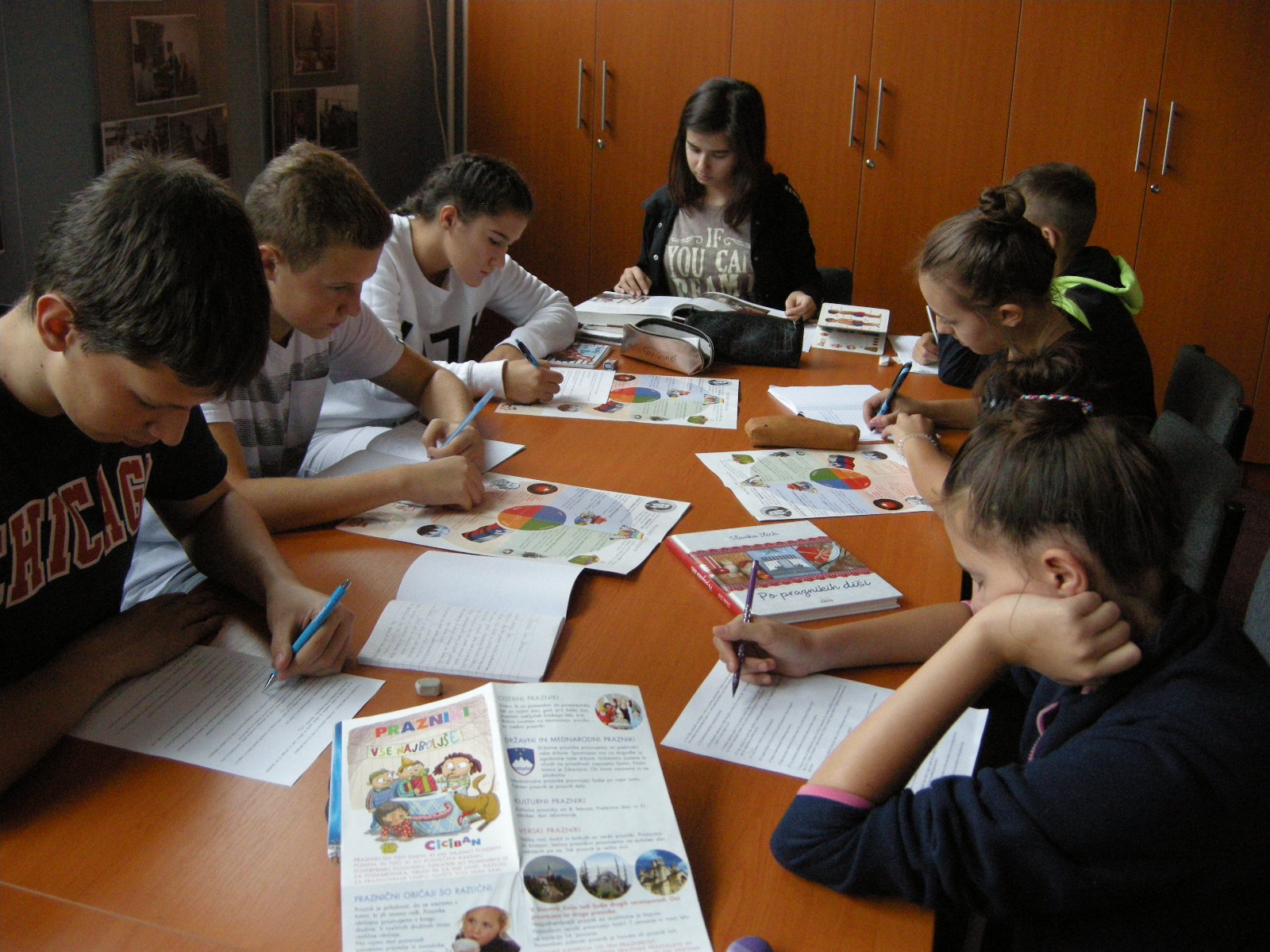 This year is the European Year of Cultural Heritage, that is why we linked reading with learning about sights of Slovenia; our topics were food, Slovenian towns and holidays. Given that 2018 is also Cankar's year we did not forget about this great figure. We read his story Cup with dried pears. When learning about traditional Slovenian food we also marked the map with names of food significant for those areas. We also filled in the names of towns and customs. In the book of Irena Cerar Paths of fairy tales of Slovenia we looked for stories happening on fortresses. In learning more about holidays we were assisted by books Slovenian holidays by Janez Bogataj and It smells like the holidays by Slavka Ilich. We found a lot of interesting information in magazines and tourist leaflets. Pupils will show their knowledge about Slovenian holidays at the quiz we organise on 20 October in Banjaluka.