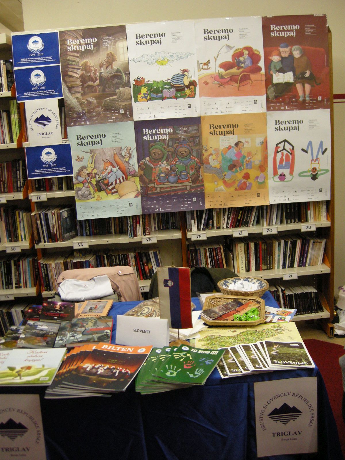 European Language Day was an opportunity to present the project National month of joint reading in the National Library in Banjaluka. At the fair of languages there were exhibited posters with illustrations of Slovenian creators. Members of Association Triglav from Banjaluka also take part in the EU-funded project United in variety. Books are excellent opportunity to build bridges between cultures, reading can help us see what we have in common and what are our differences. The event that will be organised at the end of the project by Association Pleteršnikova domačija Pišece will be an opportunity for discussion and socialising.