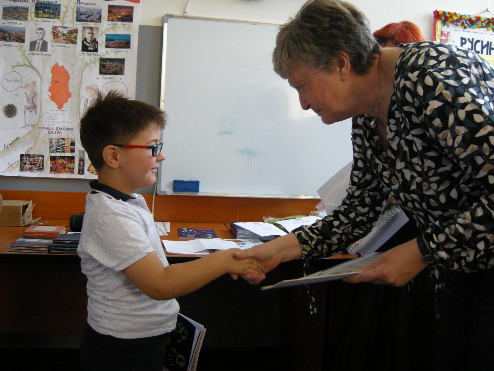 Ljoba Jenče prepared a program in which we all actively participated. The bravest in singing were the youngest who had just started learning Slovenian. It is in this group that there are many who never miss classes, and in addition to certificates for attendance, they also receive rewards. Among them are diligent readers. They received awards from the Slovenian Reading Badge Association and awards for their participation in the Library – Universe of Treasures project. It was presented by the director of the Anton Tomaž Linhart Library in Radovljica, Božena Kolman Finžgar, who always ensures that our students do not run out of reading material.