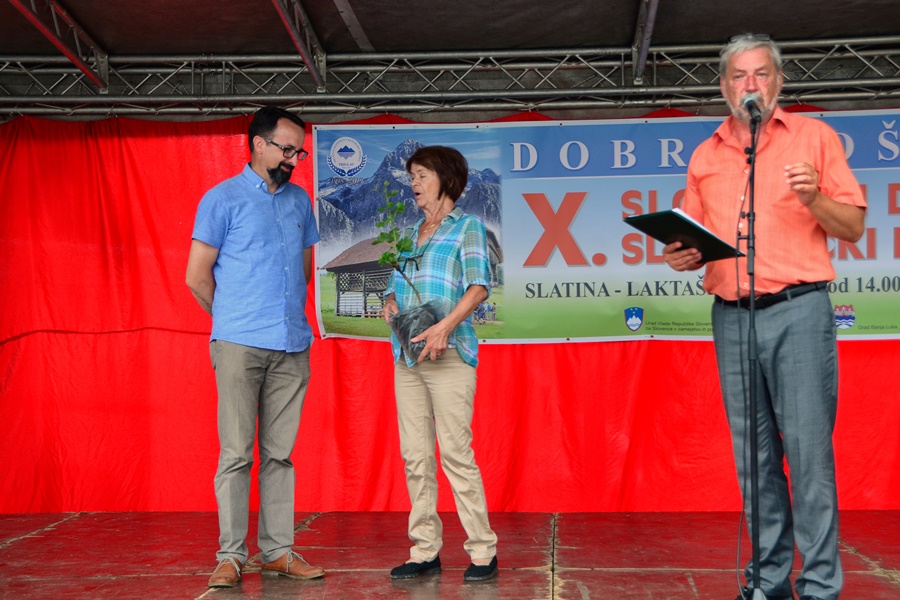 This year, the Association of Slovenians Triglav celebrates the 10th Slovenian Day in Slatina. To make this day more festive than other years, we asked Dušan Tomažič to join us in running the program. We didn't have to ask him too much, he immediately agreed, came to Banja Luka, Slatina and, as an experienced presenter, led the program at our event. The one and a half hour program, consisting of singing, dancing by folk groups, wishes expressed by consul of the Consular Office of the Republic of Slovenia in BiH in Banja Luka, guests of the City Administration of Banja Luka, Laktaši, fellow countrymen from Slovenia and other Slovenian societies in BiH, was festive and cheerful.